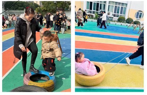在体能锻炼时段,孩子们通过走、跑、跳、钻、爬等多种运动,强健体魄。有了家长的陪伴,孩子们参与体育锻炼的热情更加高涨,尽情向家长展示自己的本领,游戏场地上洋溢着稚嫩的笑脸和欢快的气氛。